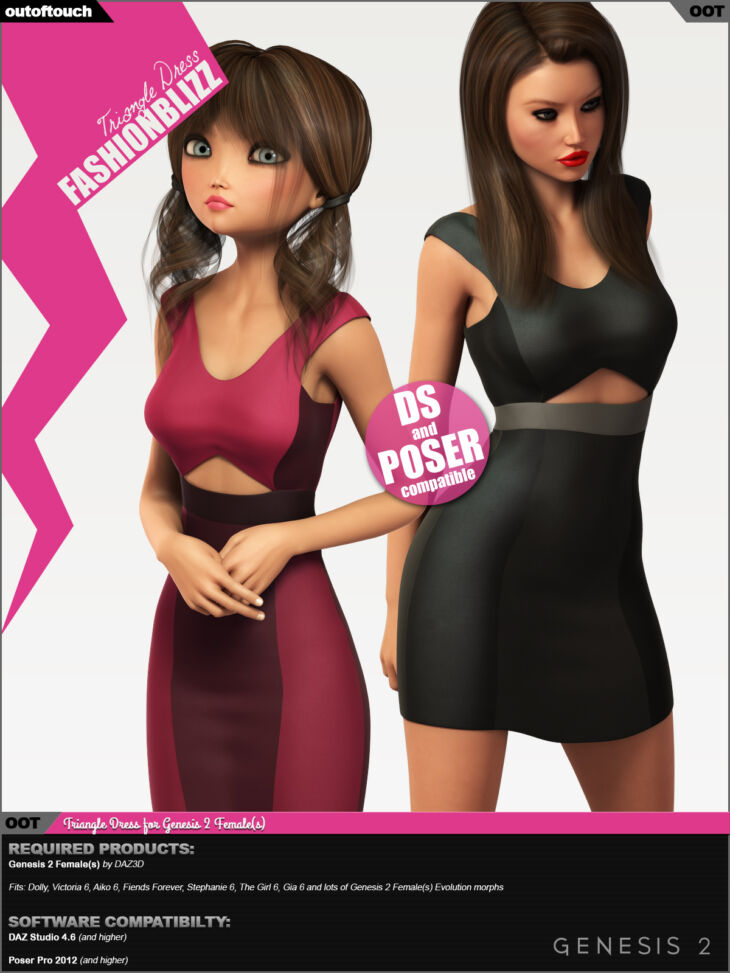 The Triangle Dress is a high quality conforming dress for Genesis 2 Female(s) by DAZ3D.