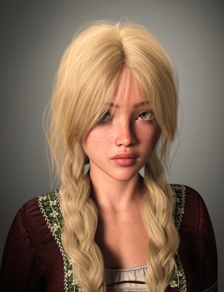 FE Bunches Braids Hair for Genesis 9 is a natural, casual double braids hairstyle. The relaxed and casual bangs and loose braided hair look natural, casual and so beautiful! It's suitable for creating a lively, youthful, elegant image.