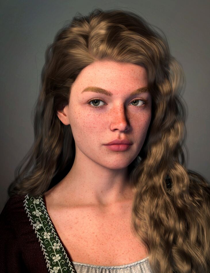 FE Teddy Hair for Genesis 9 is an elegant, long, and wavy hairstyle.