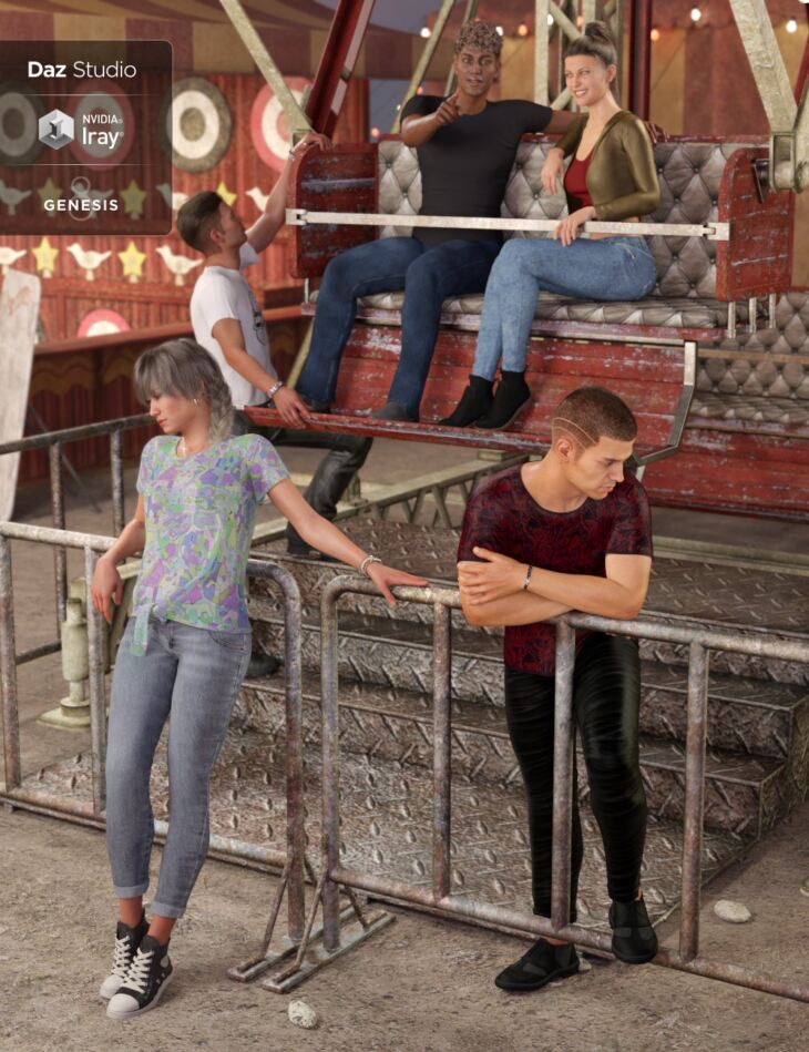 Ferris Wheel Poses includes 15 couples poses for Genesis 8 to help you recapture the magic and romance of this timeless ride, and all poses can be assigned across genders with slight tweaking.