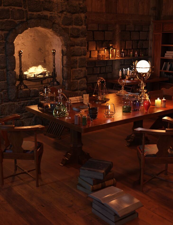 The FG Alchemist Lair Scene has a mystery about it with lots of details in the array of magical props.