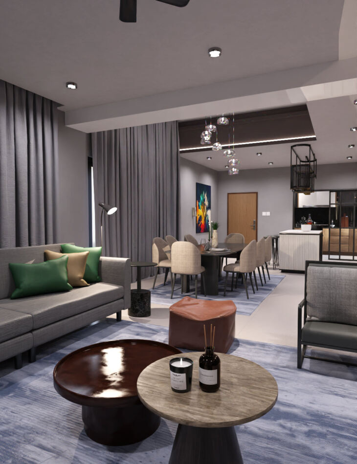 Welcome to your serene retreat! This sleek 1-bedroom home features modern earth tones and a grey color palette.