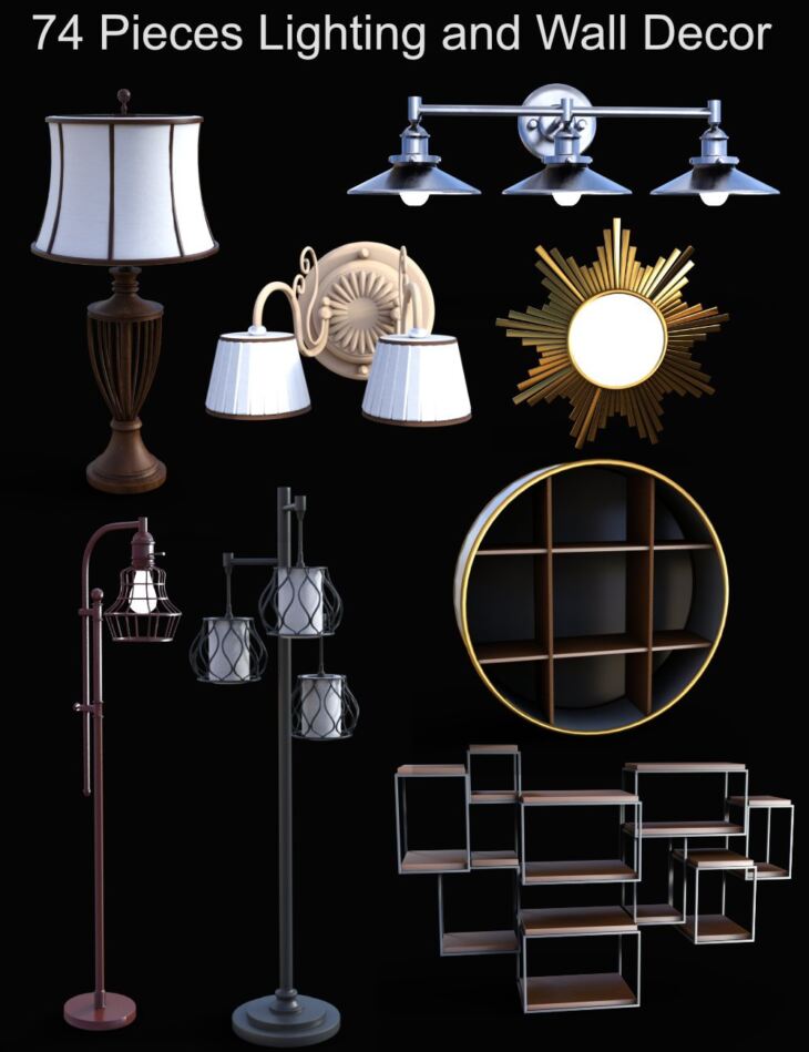 Enhance all Your scenes with 74 Lighting fixtures lamps and wall decor that are ready to completely change the look of any room or interior with ease.