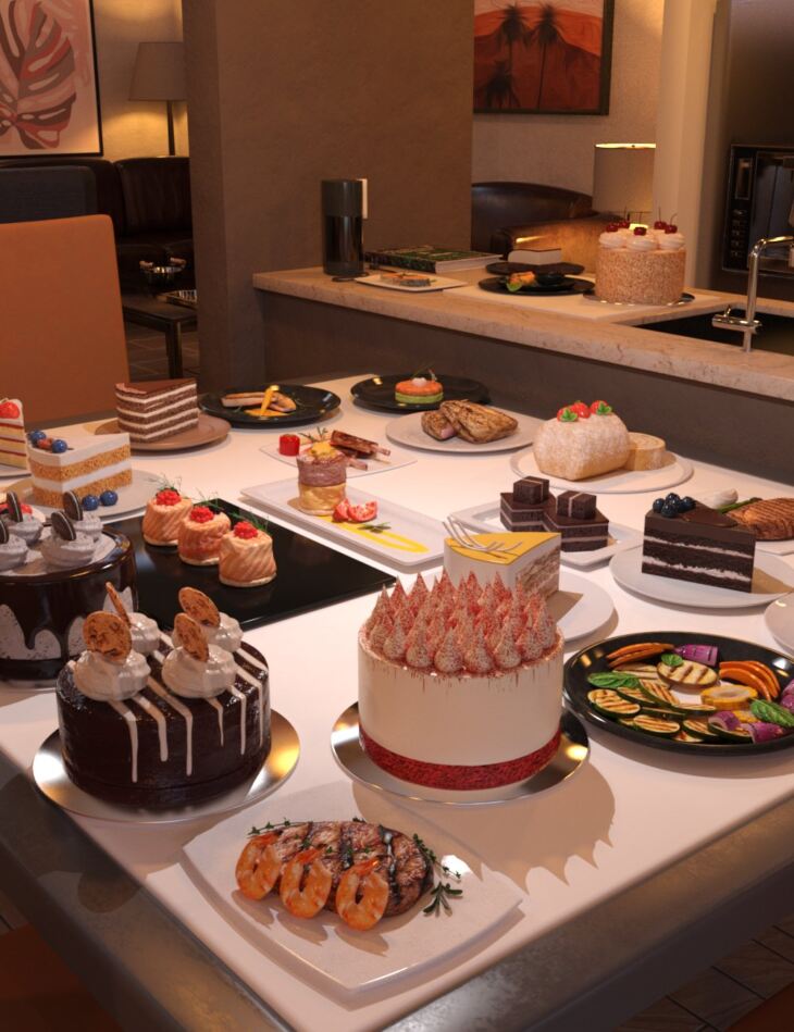 FG Gourmet Food is a set of 30 detailed gourmet dinners and desserts.