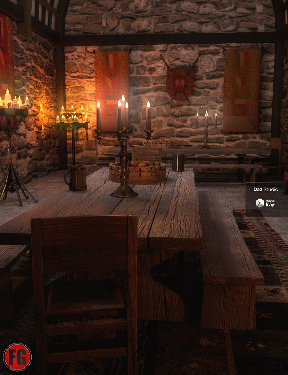 Medieval Hall environment and prop set for Daz Studio.