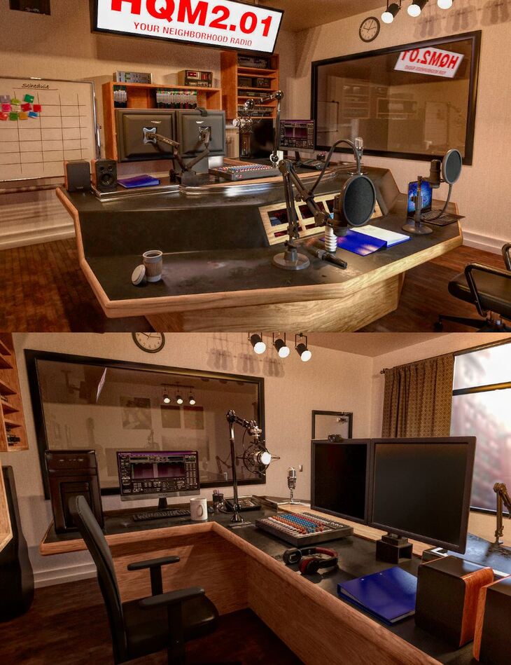 Take your renders into the studio with the FG Radio Talk Show set. Will your broadcast slot be about sports, phone-ins, or even shock jock? The choice is yours.
