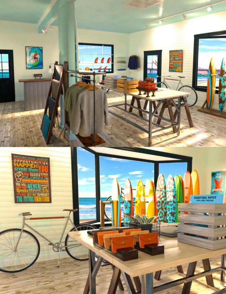 With over 100 individual props and a beautiful interior, the FG Surf Shop is the perfect environment for your renders!