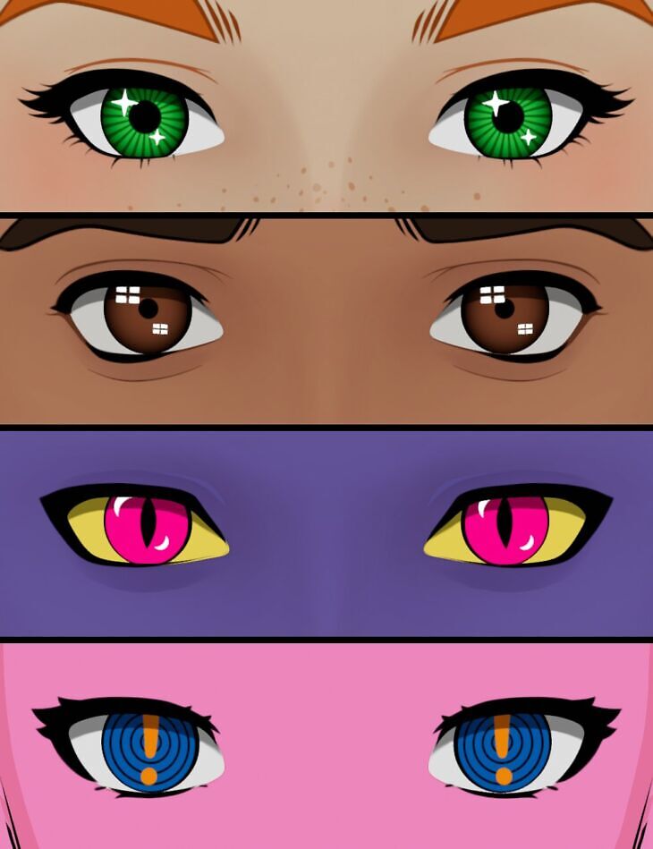 That being said, lots of options have been included for iris color/detail, pupil size/shape/color, sclera colors and highlight shapes/visibility to get you started.