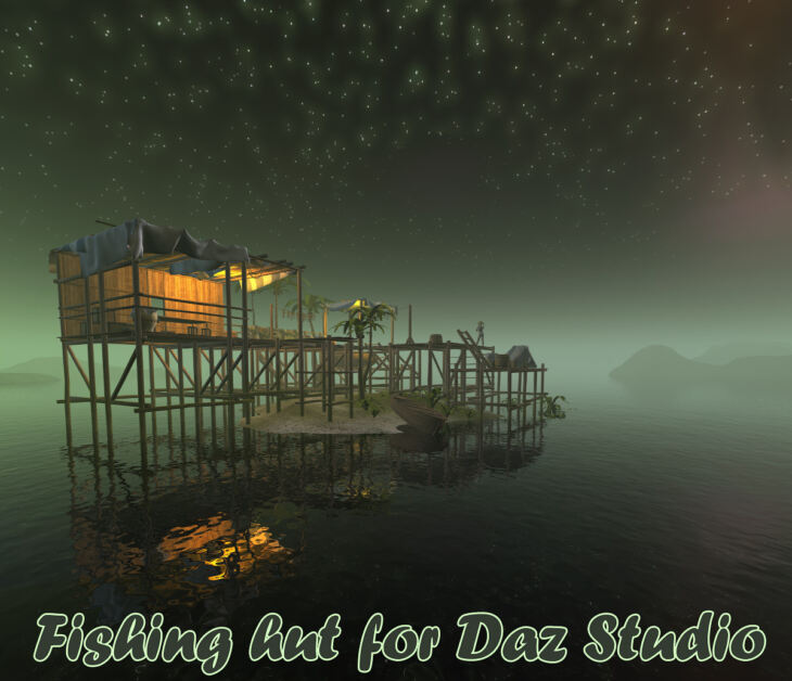 Model of small fishing cabin ashore ocean.