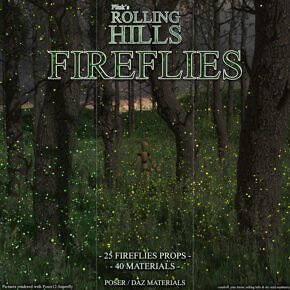 "Flinks Rolling Hills - Butterflies" expands the "Flinks Rolling Hills" package with a total of 28 butterflies props and 96 poser materials.