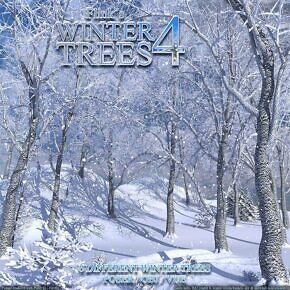 "Flinks Winter Trees 5" contains 5 different winter tree objects covered with snow in the Poser, Vue and Obj format.