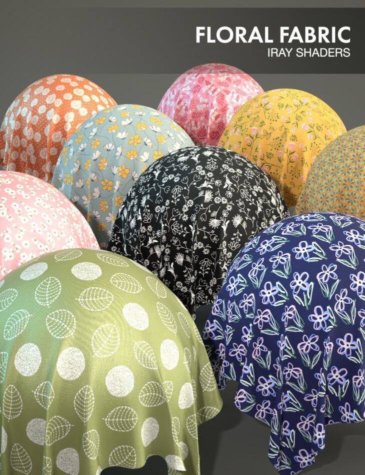 Floral Fabric - Iray Shaders is a set of 75 shaders made from 25 unique, created-by-hand patterns.