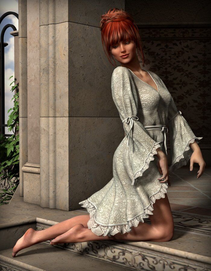Romantic and playful, with bows and ruffles, this dress will add grace and elegance to 3D renderings.