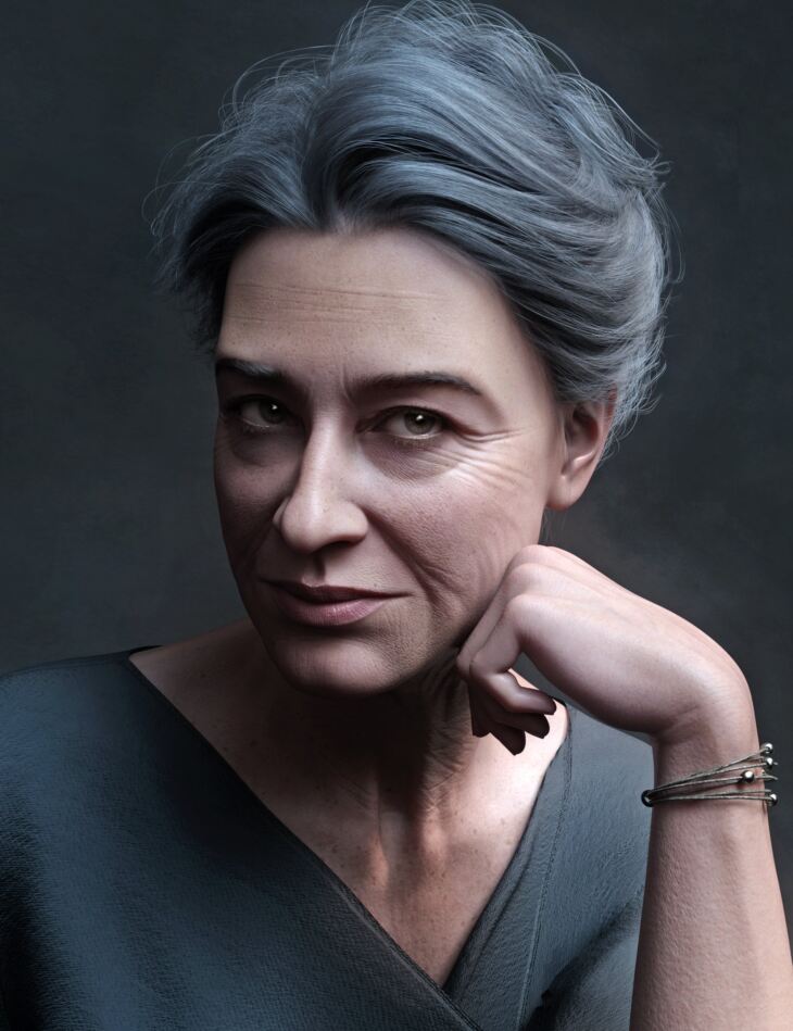 FN Quinn HD for Genesis 9 is a versatile mature character that comes with PBR materials, detailed morphs, 5 LIE lips, 5 LIE makeup options, and anatomical element textures.