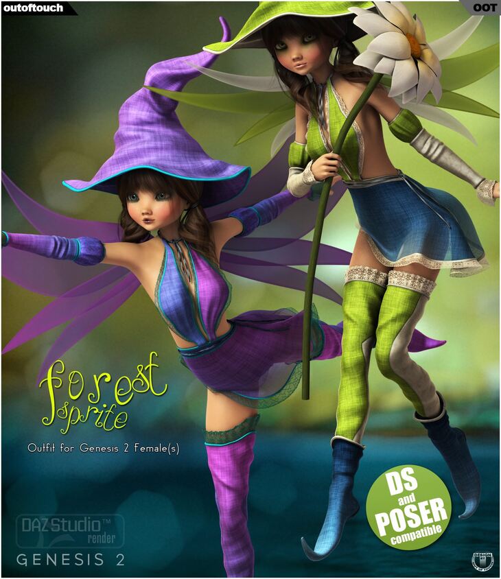 Forest Sprite is a high quality conforming fantasy fairy outfit for Genesis 2 Female(s).