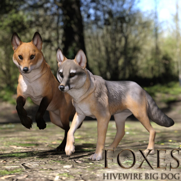 A set of fox morphs and textures for the HiveWire Big Dog. Includes 2 morphs: Fox and Fur Bulk Blunt, as well as two sets of PBR fox textures in red and grey. Poser Superfly or Studio IRay rendering recommended for best results.