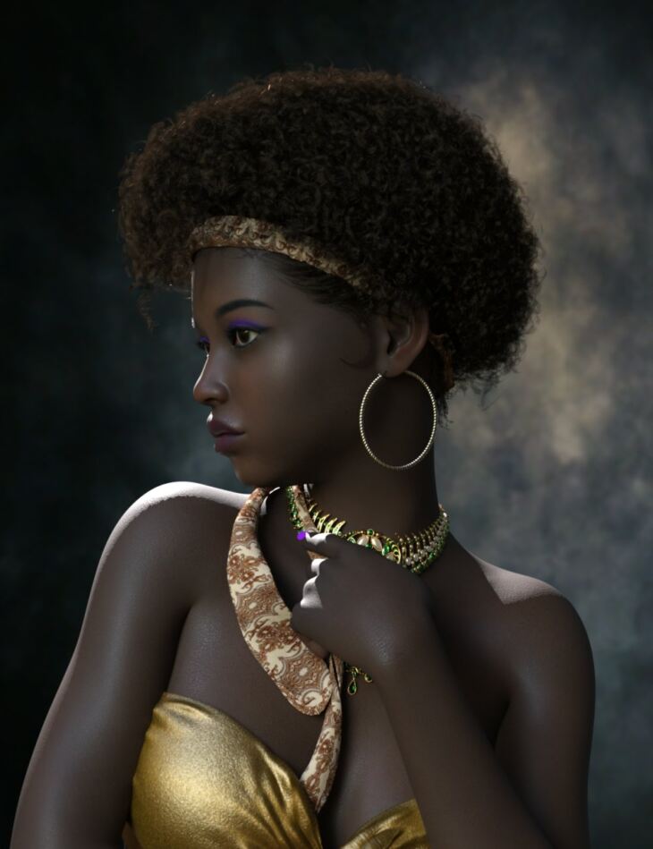 Foya Tight Curls and Headband for Genesis 8 and 8.1 Females is a morphing, afro hairstyle.