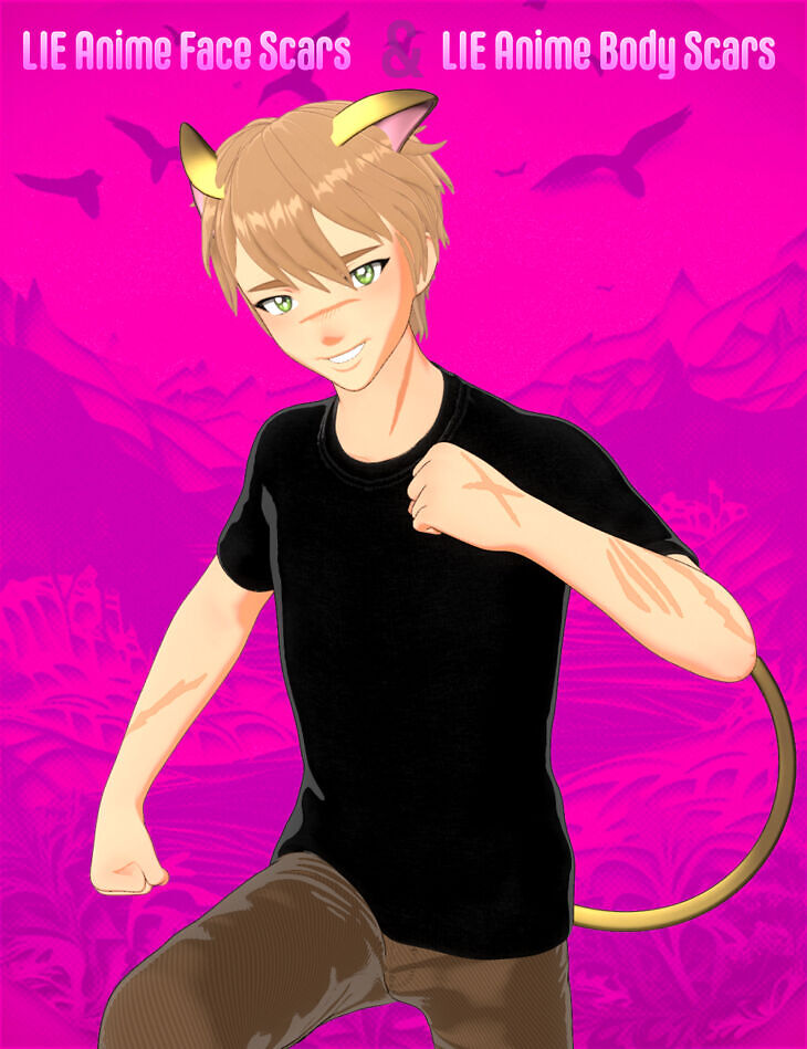 Enhance your Filatoon characters with our "FPE Anime LIE Body Scars for Genesis 9." This product features 47 stylized scar textures, applied via LIE (Layered Image Editor) presets directly onto your Genesis 9 Toon Characters diffuse texture map.