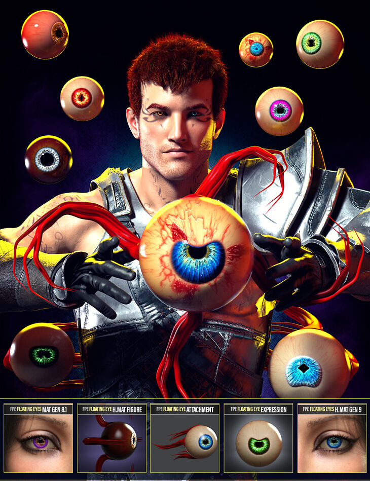 "FPE Floating Eye for Genesis 9 and 8.1" is a versatile character designed to add a whimsical or creepy element to your stories.