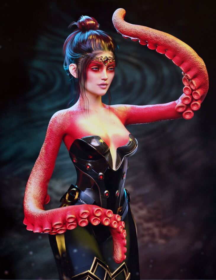 FPE Tentacle Arms for Genesis 8 and 8.1 Females* consists of two Geografts that will transform your character** into a fantasy creature by replacing her Left and/or Right Arms with tentacles.