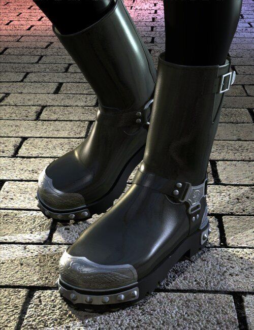 Just what Vicki needs when a tough pair of boots is called for. Traditional motorcycle boot styling, fully modeled lug soles, and nearly enough metal to build a Harley. Equally at home on gritty urban streets, in the roughest wilderness, or anywhere in between.