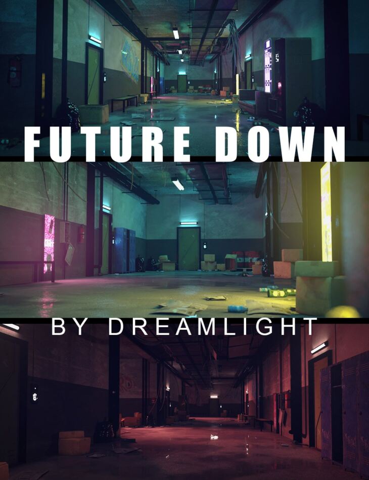 Future Down is a forgotten cyberpunk-style hallway, as detailed as it is scary. It's stylish yet grungy. It has a worn touch as well as high-tech details and is full of camera angle opportunities.