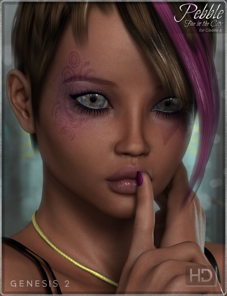 Pebble is a high quality beautiful urban fae character set for Giselle 6 for the use in DAZ Studio 4.6 and up and Poser 9 and up.