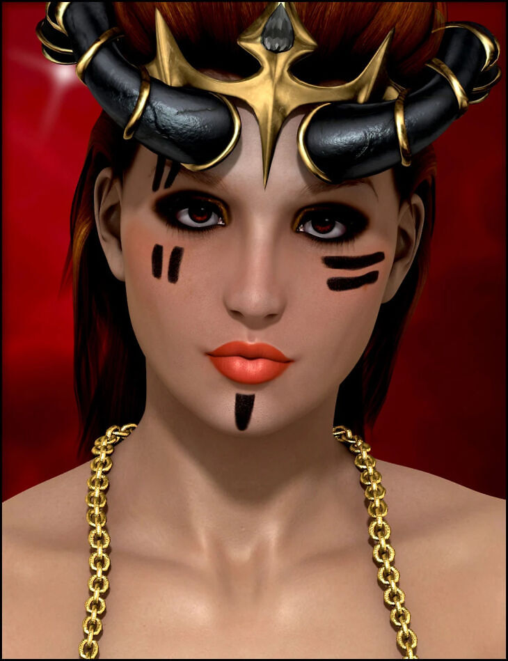 A fantasy warrior custom morph for Gia, a premiere 3D model, with both regular and fantasy makeups. This package is sure to turn Gia into the fantasy warrior she was destine to be!