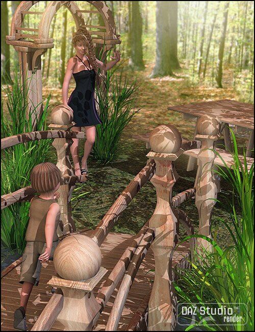 Somewhere along a long winding path in a remote area there is a bridge that crosses into another world filled with beauty and peace...let the Garden Escape Bridge, Picnic Table, and Arbor be that escape for you!