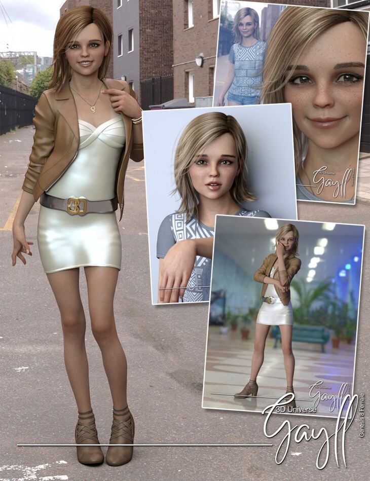 Gayll is a feisty young adult character for the Genesis 8 Female base. Loaded with personality and pizazz, Gayll will be a welcome addition to your 3D Library. She makes a perfect fun older sister for Brynn, Amber, Cadee, Dayton, Emma, Fawne, and other younger characters!