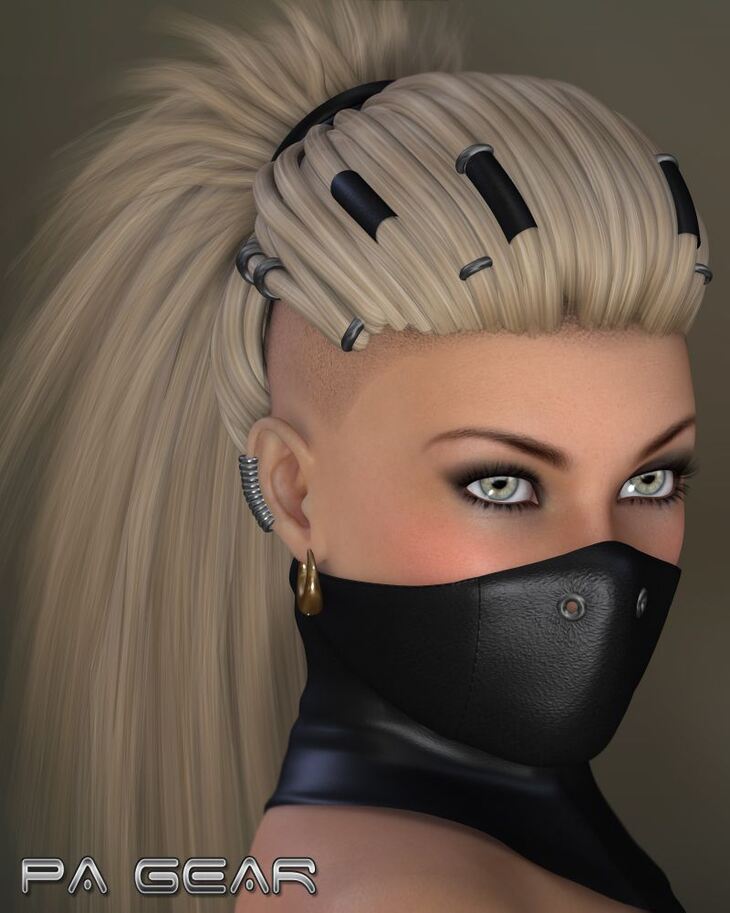 Post Apocalyptic solid HairProp and conforming Mask for V4. Easy to fit Morphs to fit and adjust your cool Assassin girls.