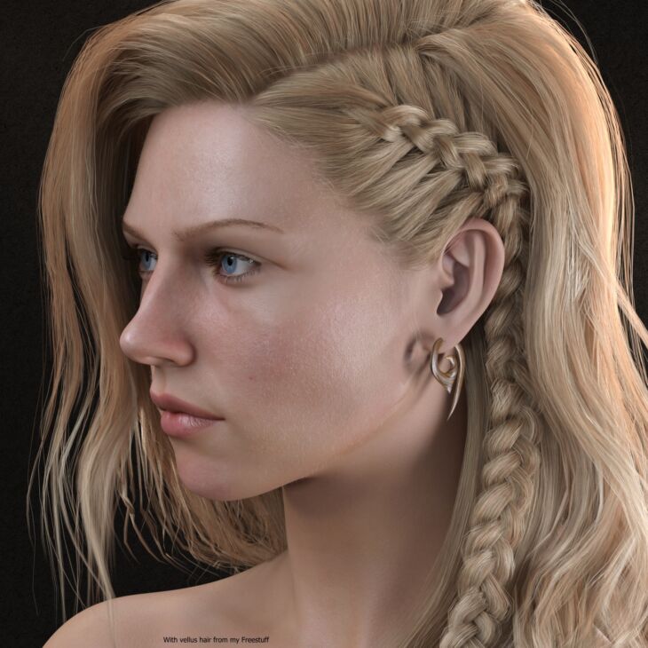 Gertha is a custom character for Genesis 8 and 8.1 Females. She has PBR and Uber Iray materials and uses a hybrid UV with Genesis 8.1 advanced eye maps.