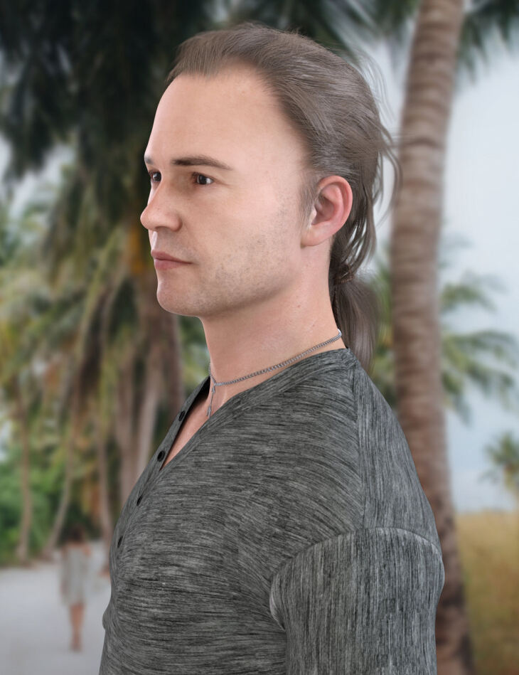 A fibermesh men's ponytail for your Genesis 8 males! This hair is a pulled up style, great for your characters busy working and adventuring.