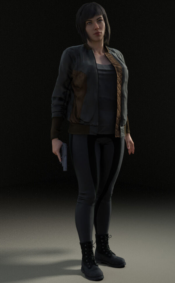 GITS Motoko Kusanagi Bomber Jacket Outfit And Seburo Pistol In Daz G8F V1.