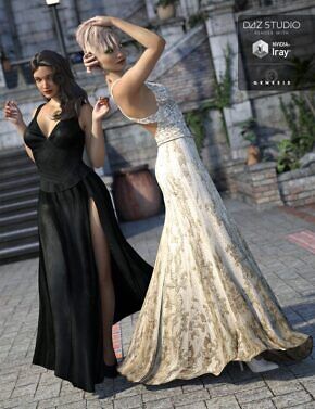 An 8 item outfit for Genesis 3 female and all characters based on it. It comes with 6 full material/color presets each containing 2 to 4 options for the dress itself.
