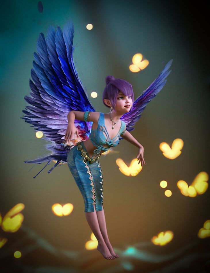 Simple Wing prop with morphs for Genesis 8 and 9, 16 shapes, 3 lights 33 materials (Angels, Fairies, Demons, Birds,..etc.), and 28 poses for Genesis 9