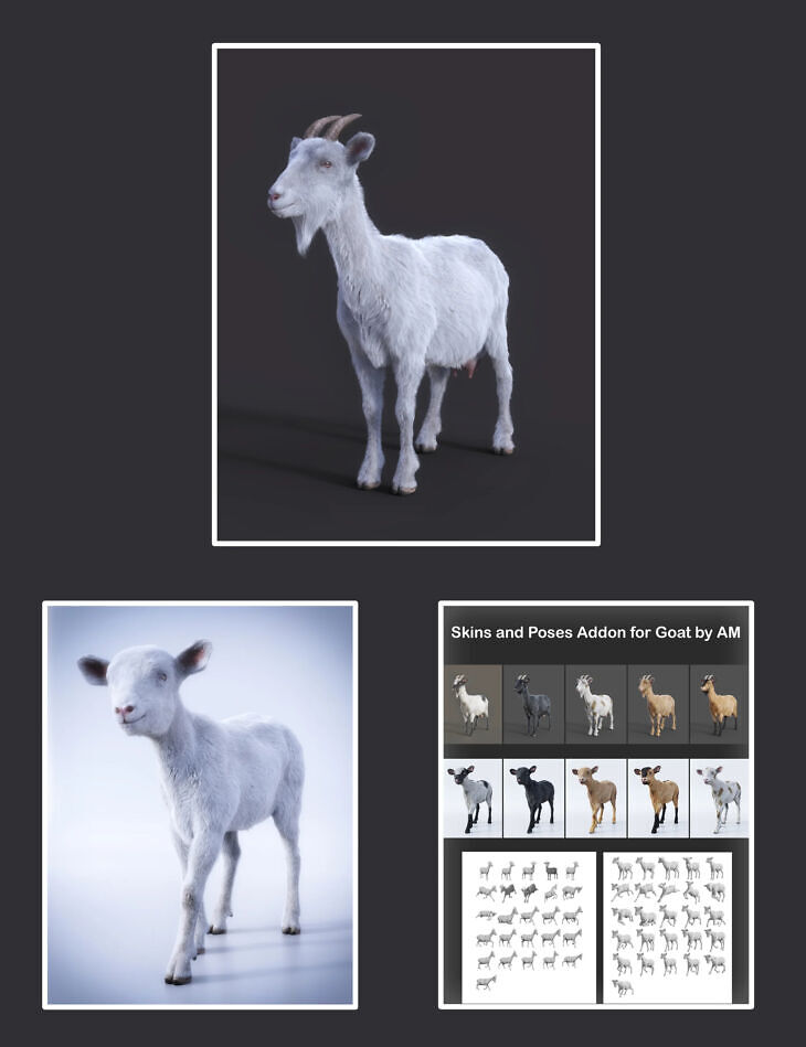 Goats and kids everywhere! Get this complete bundle, including the Goat by AM, Kid for Goat by AM, and a complete set of texture options and poses, all in one package