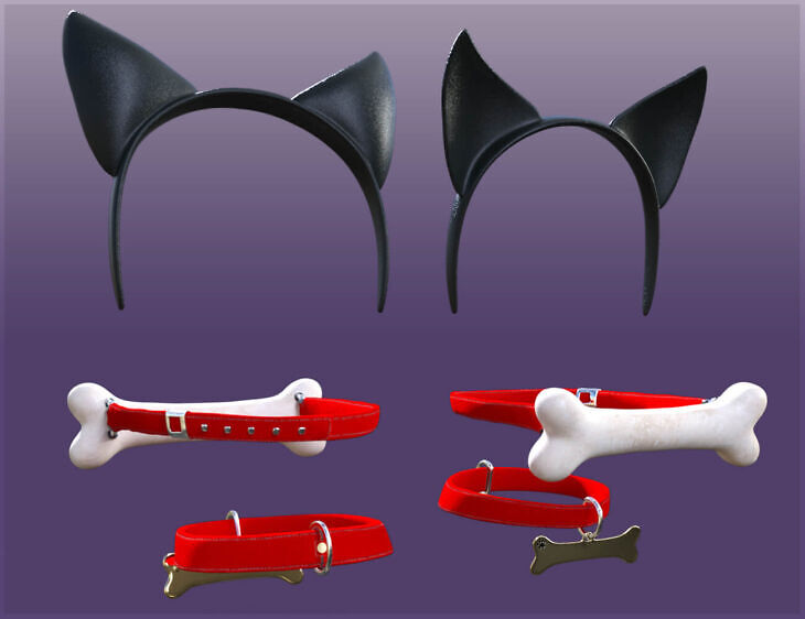 - Collar ( 1 bone + 6 morphs \ Black and Red Options + Put Her Name option (You need an image editor to add text to the texture if you want ) )