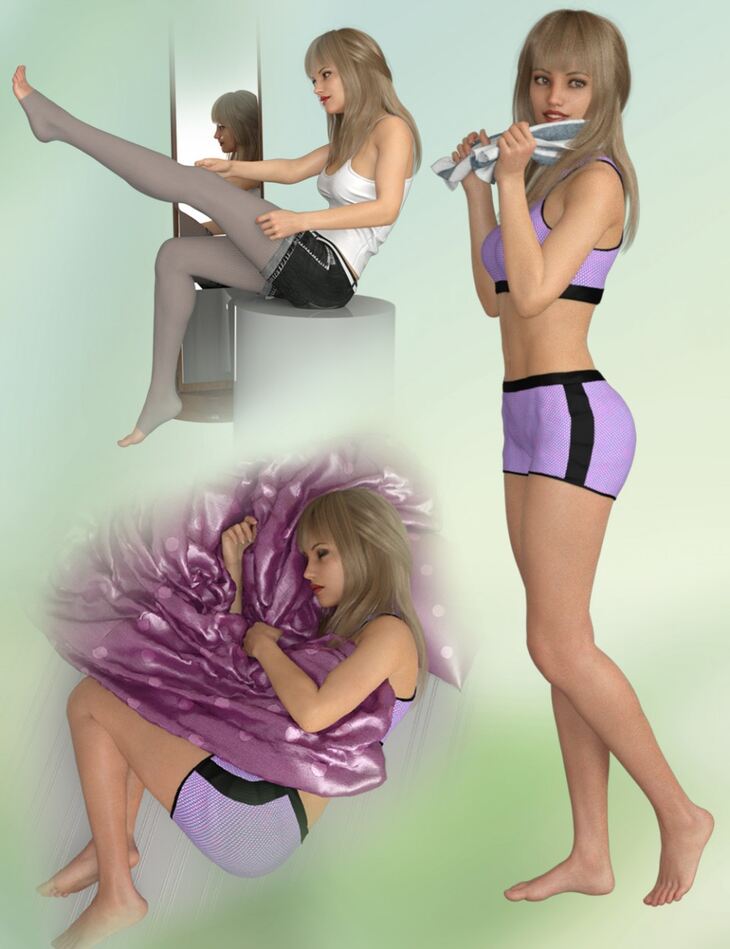This is a Everyday poses, including sleeping, washing, make-up, fitness, etc. Also includes many props, beds, mirrors, cosmetics, etc.