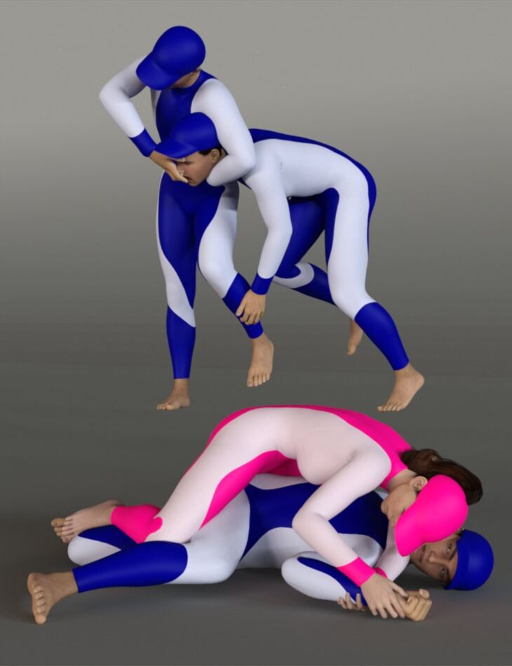 Grappling Poses Volume 2 for Genesis 8 and 8.1 is an additional set of pose pairs of 2 figures grappling, crafted with particular attention to hand posing and featuring tight, realistic interaction.