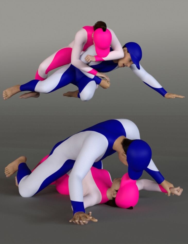Grappling Poses Volume 5 for Genesis 8 and 8.1 is an extra set of pose pairs of 2 figures grappling, crafted with particular attention to hand posing and featuring tight, realistic interaction.