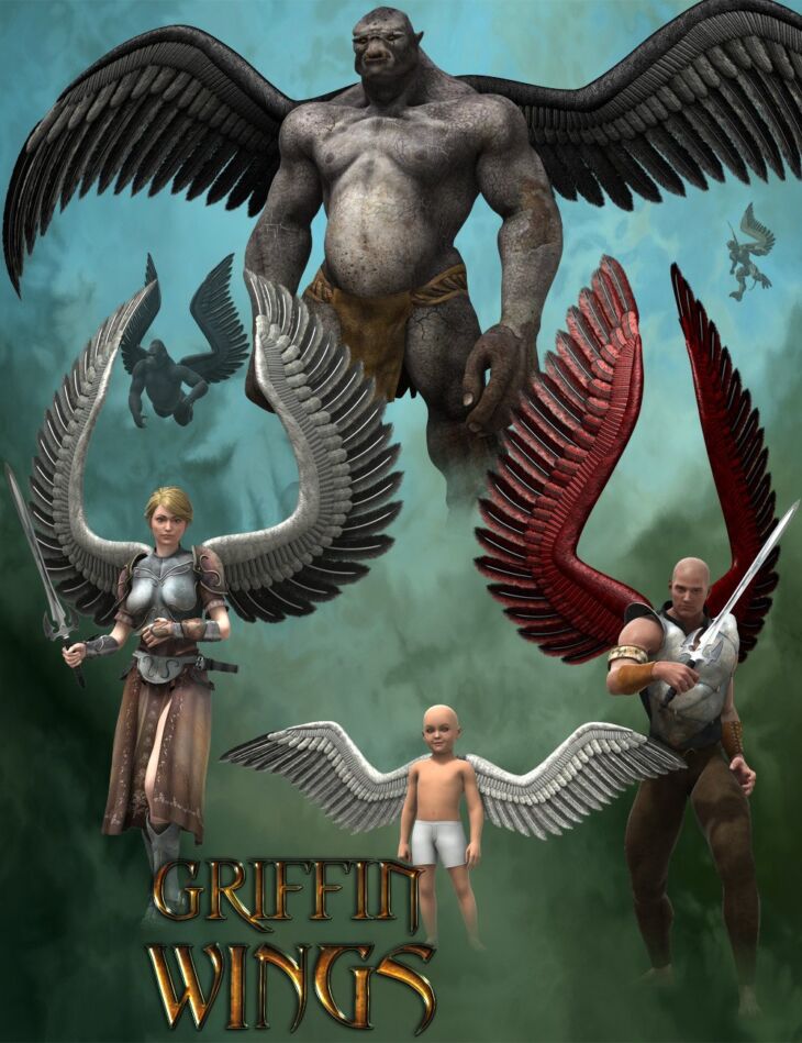 Griffin Wings is the latest product from Midnight Stories and is the precursor to the stand alone figure “Griffin Lord.” These are a conforming set of wings that will fit any 3D model figure with an upright chest bone, so that gives you a huge range of figures that it can fit. There's both a Poser and DAZ Studio version, separate figures all together and NOT a DSON port.