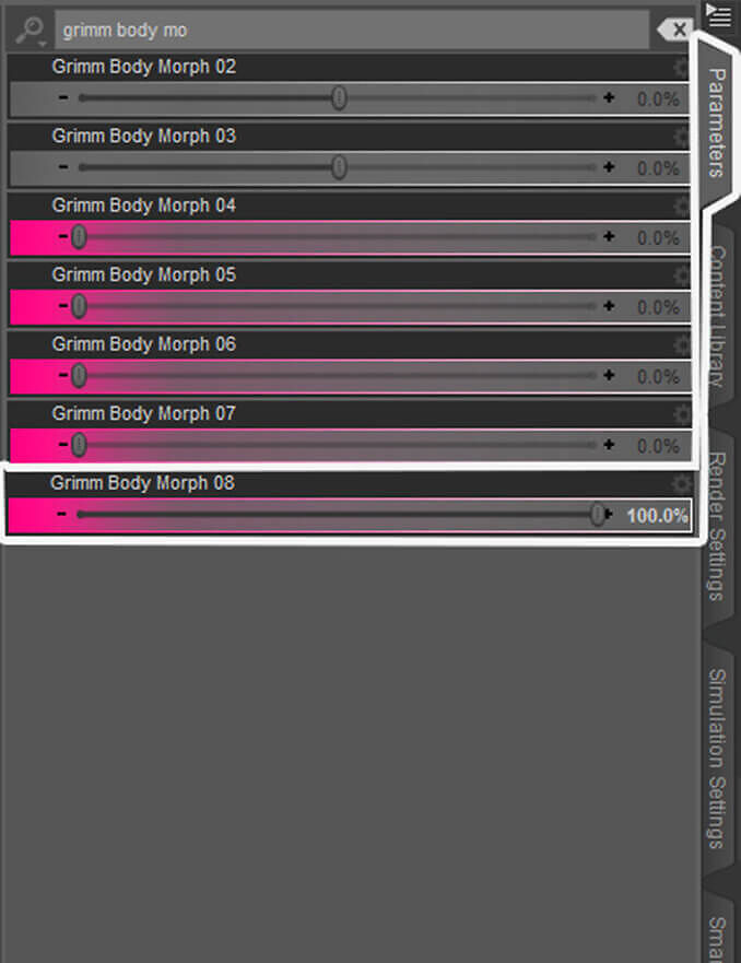 Equipped with meaty curves and strong attributes, Grimm’s Body Morph 08 is ready to be loaded on your favorite character. Bigger breasts, less tolerance for the skinny and feeble legs, packed with quality protein mass, gain more weight as the clock hits eight.