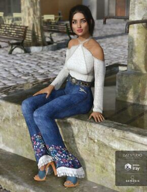 Groovy Lady dForce Hair and Clothing for Genesis 8 Female and Genesis 8.1 Female consists of, dForce tied Off Shirt, dForce bell bottom low rise Pants, mod high heel Boots, dForce Afro Hair, hoop Earrings, and round wire rimmed Glasses.