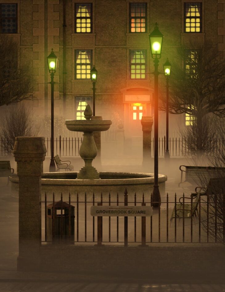 Grovebrook Park: A Haunted Add-On expands the original Grovebrook Park set with dirty, mossy, and rusty textures, along with ground fog, murky fountain water, and spooky lighting. Props have been moved to create a mysterious mood, including a barricade.