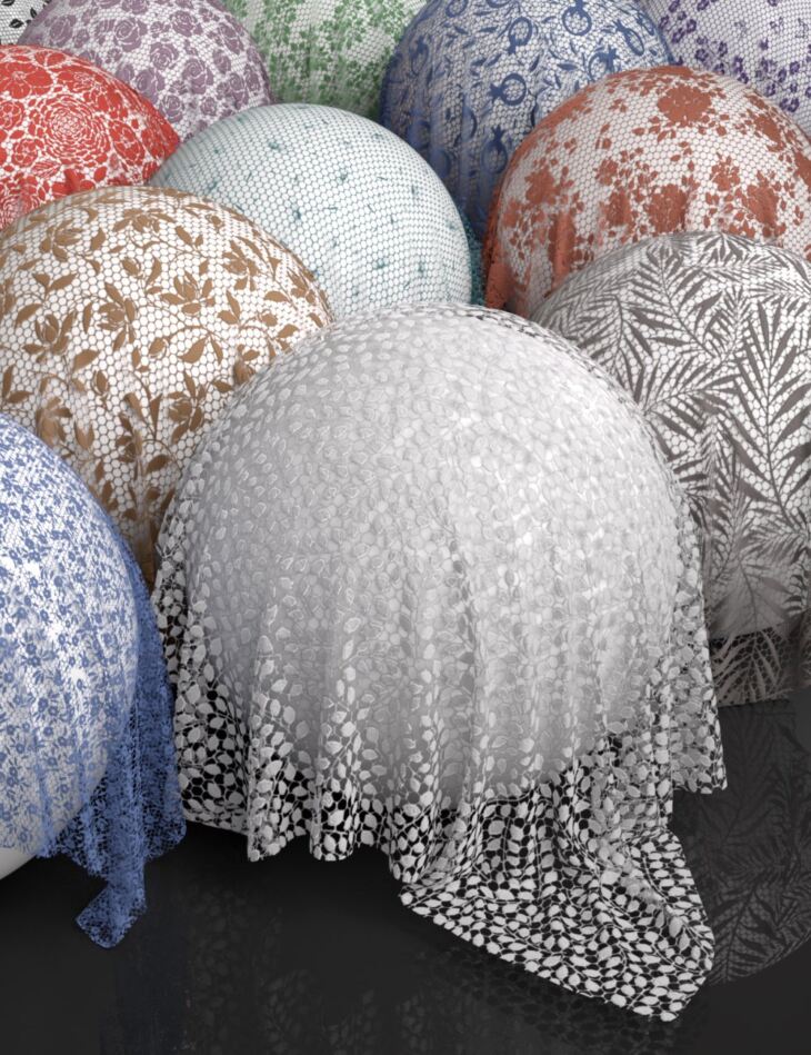 Guipure Shaders is a set of shaders created for Daz Iray. You will get 35 high-quality floral mesh lace shaders. Two basic meshes are also included.