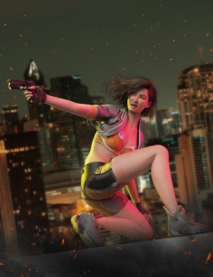 The Gun 'N Poses for Genesis 9 Base and Base Feminine comes with 30 Full Figure Action and Pin-up style poses for the Genesis 9 Base figure and Genesis 9 Feminine figures.