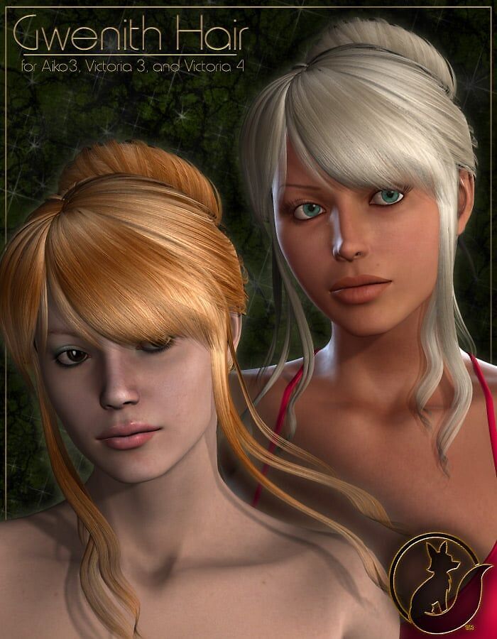Silken strands of hair tumble delicately down from a graceful upswept styling in this delightful hair product. This hair offers morphs, handle and dial based morphs to offer windswept motion as well as simple movement.