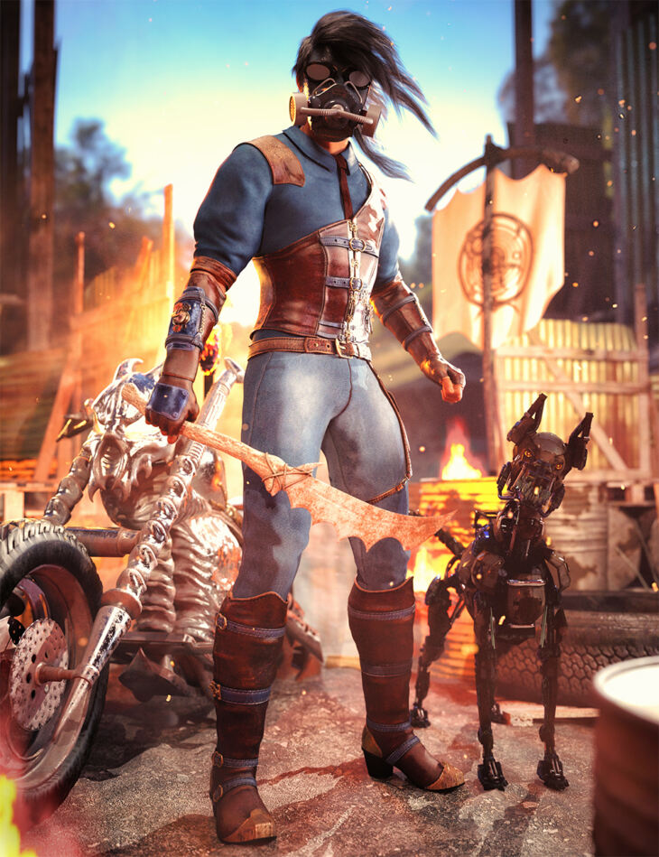 The Halcyon Fragment Outfit for Genesis 8 and 8.1 Males includes the complete 5-piece Halcyon Fragment Outfit and wearable preset, a stylish and futuristic look for post-apocalyptic character renders. The outfit supports a variety of shapes and widening morphs to fit Genesis 8 and 8.1 Males in most poses.
