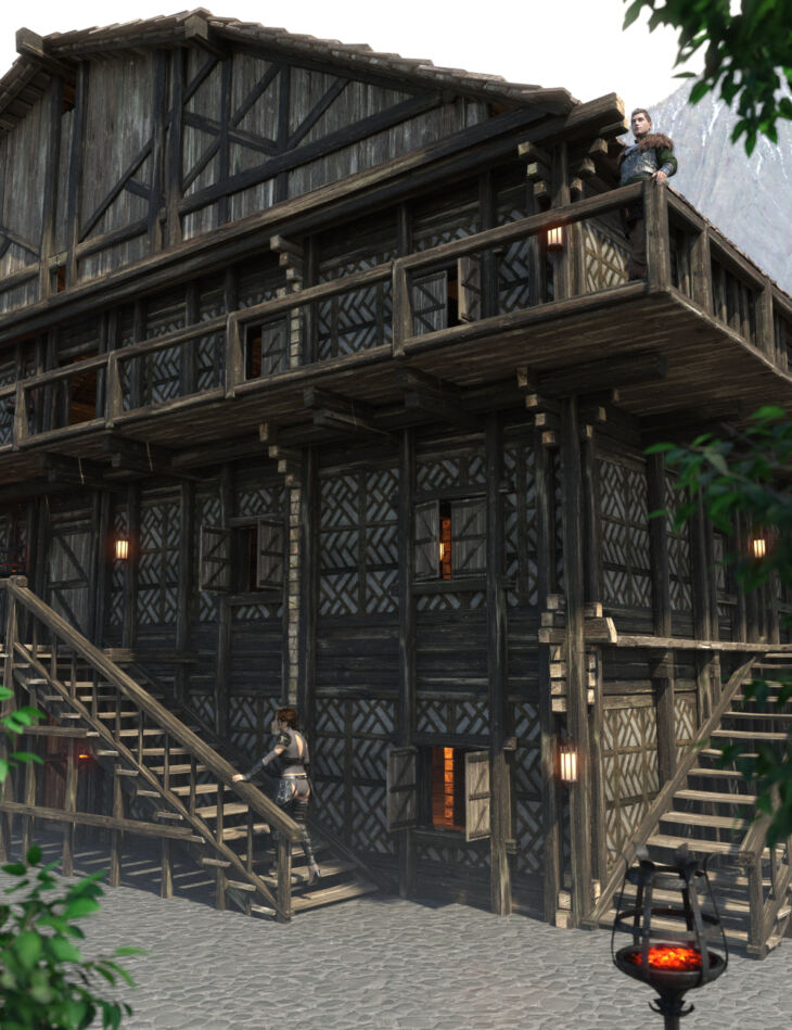 Half Timbered Halls is a collection of 3 great halls and a brazier prop, suitable for medieval kings and Viking jarls.
